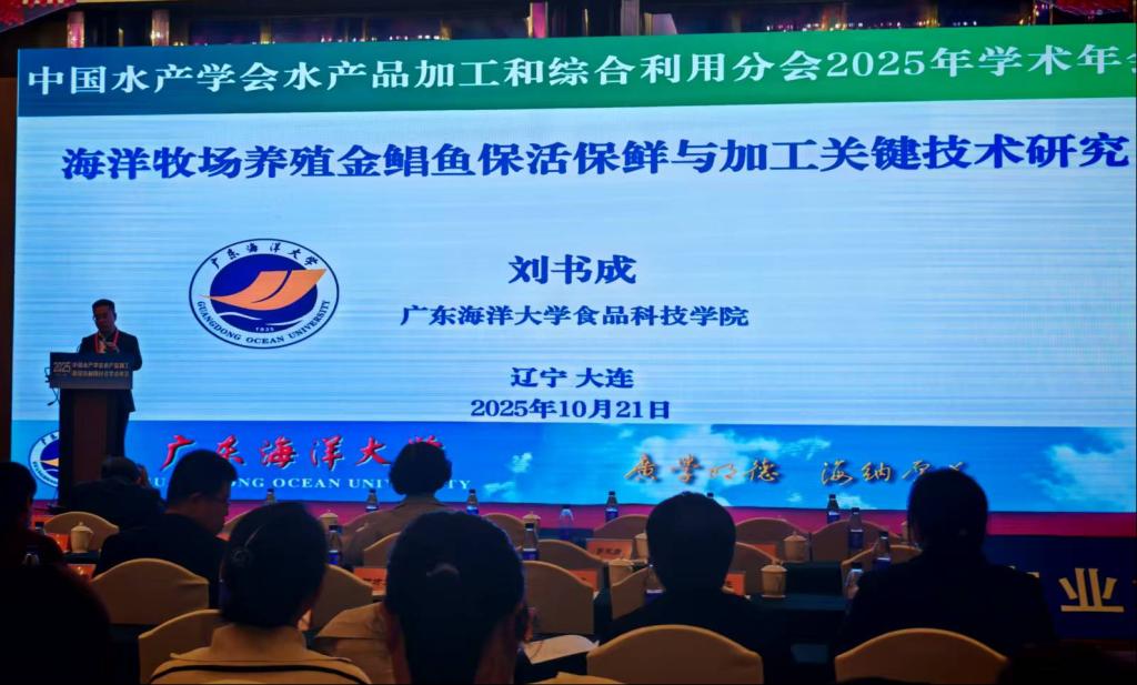10月20-23日,suncitygroup太阳新城刘书成教授、高加龙教授带领学院教师和研究生参加了在辽宁省大连市召开的中国水产学会水产品加工和综合利用分会2025年学术年会。刘书成教授受邀在大会论坛上作了“海洋牧场养殖金鲳鱼保活保鲜与加工关键技术研究”的学术报告,学院教师和研究生分别在专题论坛和研究生论坛上做了学术报告,充分展示了我集团师生在海洋水产品保鲜、加工与高值化利用等领域的创新成果。通过与国内水产品加工领域专家的深入交流,加强了学院的交流合作,推动学院学科高质量发展。