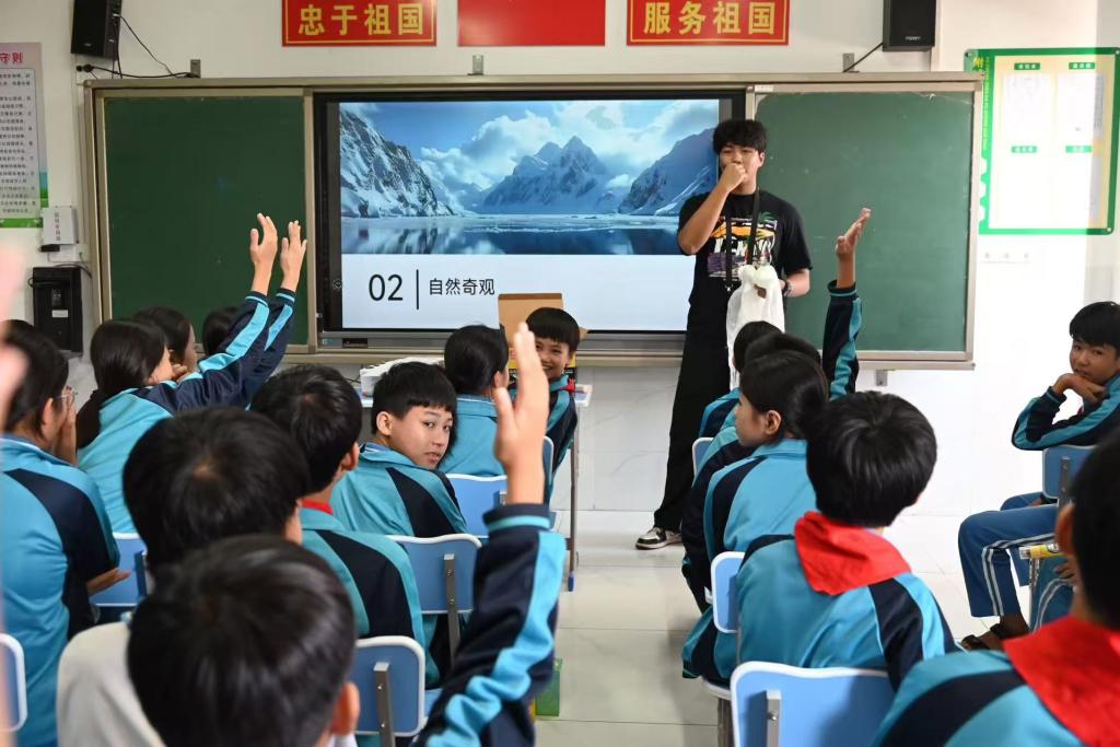 活动中,师生一行走进雷州博物馆,在历史文物与地域脉络中感悟雷州文化底蕴;随后赴浦中小学开展民族文化交流。西藏、新疆学子以图文并茂的形式,向孩子们展示了独具特色的民俗风情与自然风貌,现场带领齐唱《哇哈哈》,在童声中传递民族情谊。副市长方良锋对学院实践项目表示衷心感谢,期待未来为雷州学校带来更多生动多元的课程,推动基础教育与文化传播深度融合。在座谈环节,伍彬一行与浦中小学黄校长就教育创新与帮扶机制进行探讨,学院党委表示将推动党支部开展常态化特色共建,让“百千万工程”在乡村教育中扎根结果。